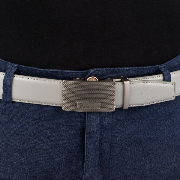 Pasek męski skórzany do spodni casual garnituru automat gładki jasno szary Beltimore A52 : Kolory – szary, srebrny, Rozmiar pasków – r.105-120 cm