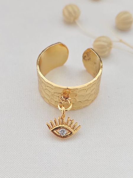 – materiał: mosiądz- powłoka: 14K złoto- rodzaj kamienia: cyrkonia- kolor kamienia: bezbarwny- rozmiar: regulowanyWskazówka: Zdjęcie produktu w powiększeniu.