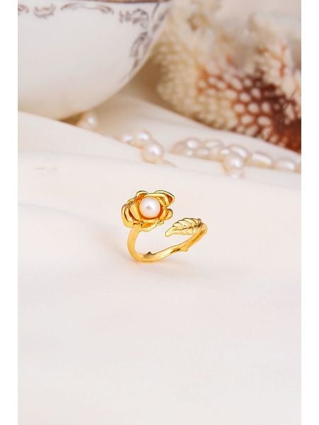Pierres delicates Pozłacany pierścionek z perłą syntetyczną rozmiar: onesize