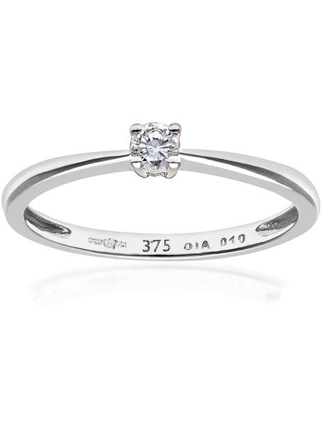 – materiał: 9-karatowe białe złoto próby 375- rodzaj kamienia: diament- kolor kamienia: I-J- czystość: I1-I2- liczba karatów: 0,1Wskazówka: Zdjęcie produktu w powiększeniu.