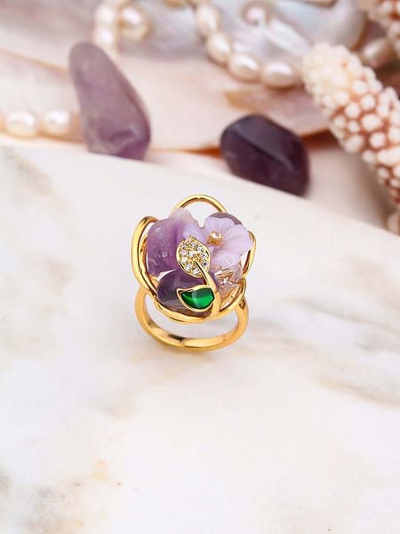 – materiał: mosiądz- powłoka: złoto- materiał: masa perłowa- kolor kamienia: fioletowy- rodzaj kamienia: cyrkonia- kolor kamienia: bezbarwny- opakowanie: pudełko prezentoweWskazówka: Zdjęcie produktu w powiększeniu.