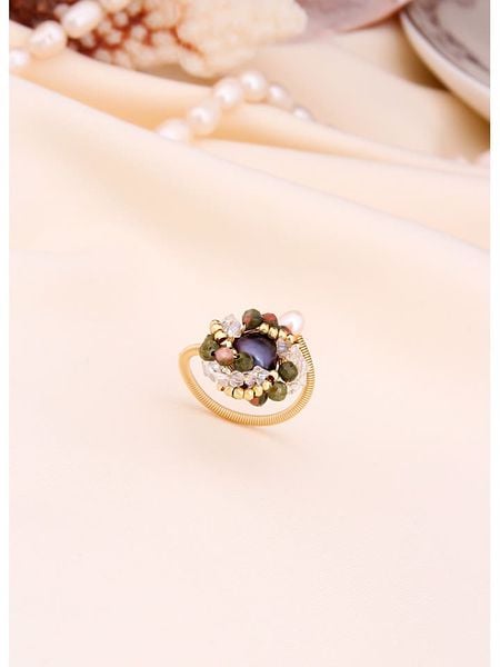 L’Atelier de Gaia Pozłacany pierścionek z perłą i cyrkoniami rozmiar: onesize