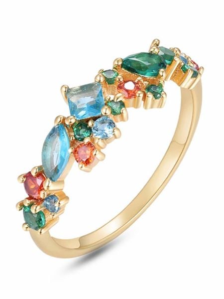 – materiał: srebro Sterling próby 925- powłoka: 18K złoto- rodzaj kamienia: cyrkonia- kolor kamienia: wielokolorowyWskazówka: Zdjęcie produktu w powiększeniu.