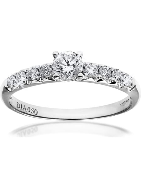 – materiał: 18-karatowe białe złoto próby 750- rodzaj kamienia: diament- kolor kamienia: I-J- czystość: I1-I2- liczba karatów: 0,5Uwaga: Zdjęcie produktu w powiększeniu.