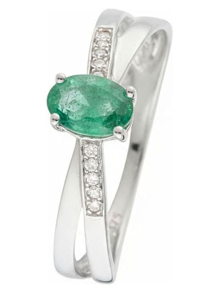 – materiał: 9-karatowe białe złoto próby 375- rodzaj kamienia: diament- liczba karatów: 10 x 0,035- czystość: P1- kolor kamienia: H- rodzaj kamienia: szmaragd- kolor kamienia: zielony- liczba karatów: 0,605Wskazówka: Zdjęcie produktu w powiększeniu.
