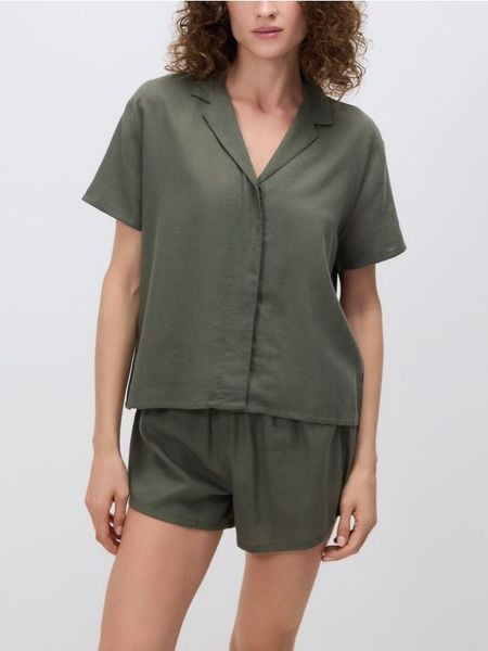 Dwuczęściowa piżama z dodatkiem lnu – oliwkowy