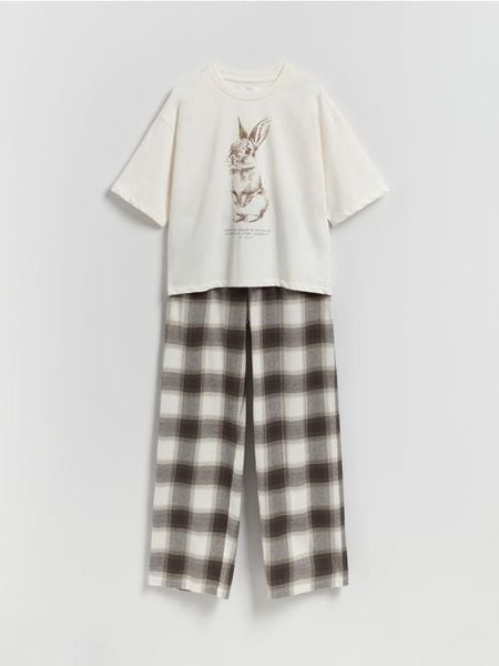 Dwuczęściowa piżama z nadrukiem – brązowy