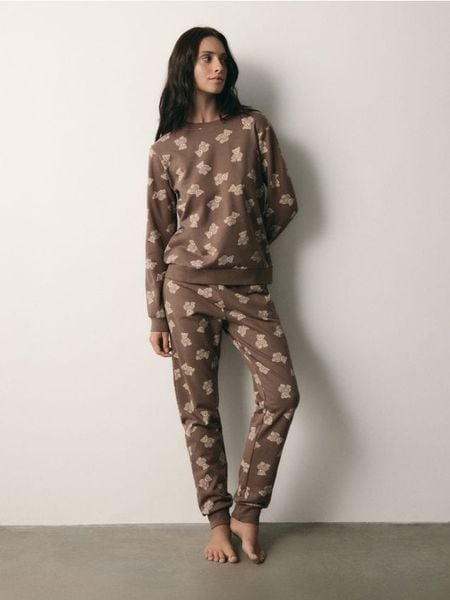 Dwuczęściowa piżama z nadrukiem – brązowy