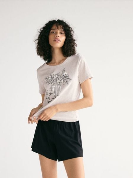 Piżama o swobodnym fasonie, wykonana z bawełnianej dzianiny.