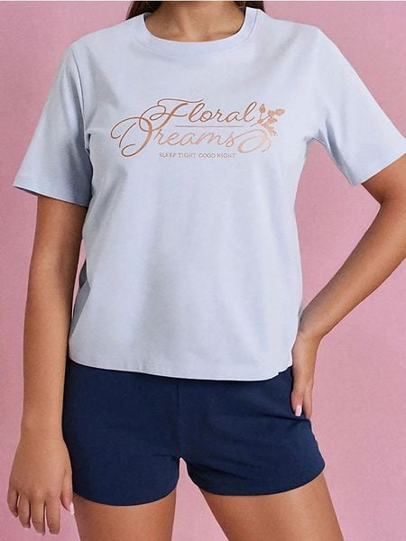 Bawełniana piżama dwuczęściowa z napisem – błękitny