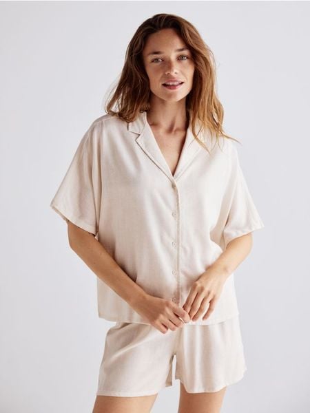 Dwuczęściowa piżama z dodatkiem lnu – beżowy