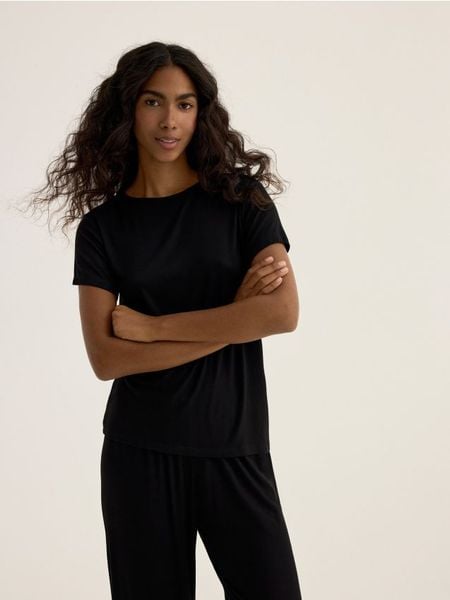Piżama składająca się z t-shirtu i spodnie, wykonana z wiskozy.