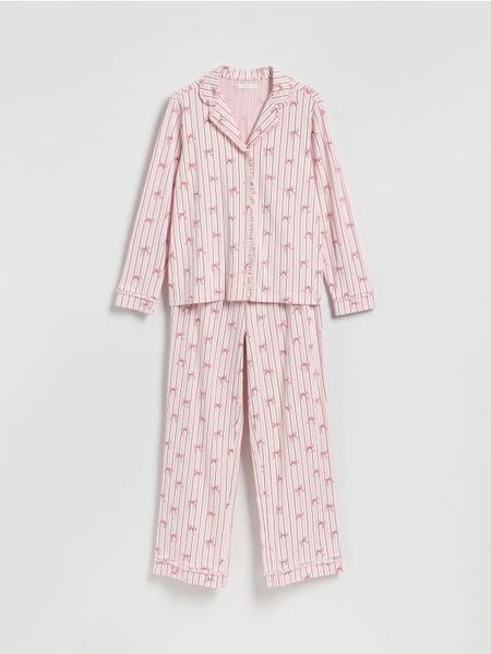 Piżama o swobodnym kroju, wykonana z bawełnianej tkaniny.
