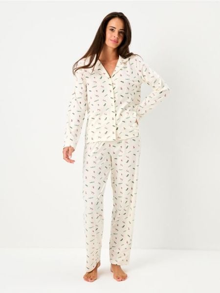 Sinsay – Świąteczna piżama dwuczęściowa z wzorem ostrokrzewu – kremowy –