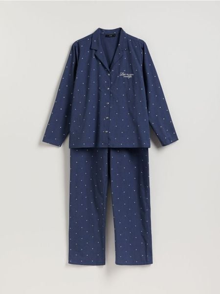 Piżama o prostym kroju, wykonana z bawełnianej tkaniny.
