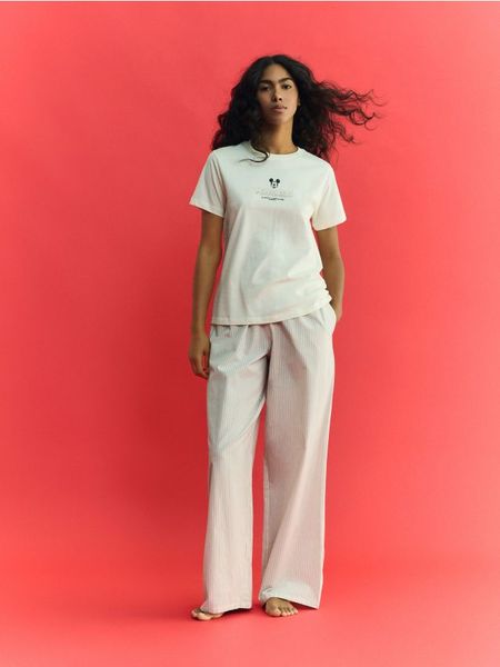 Piżama o swobodnym kroju, wykonana z bawełnianej dzianiny.