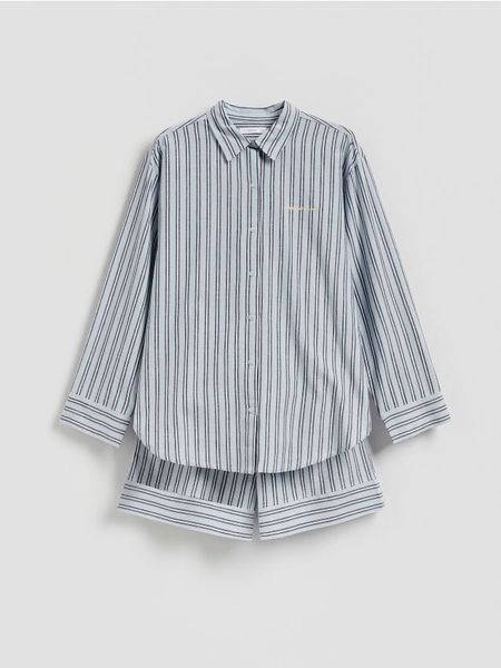 Piżama o prostym kroju, wykonana z bawełnianej tkaniny.