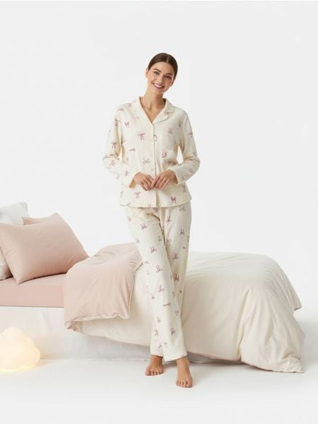 Sinsay – Piżama dwuczęściowa z motywem kokard – kremowy –
