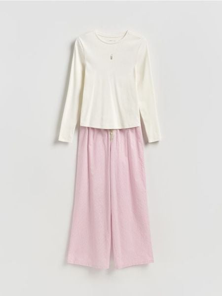 Piżama o swobodnym kroju, wykonana z materiału z bawełną.