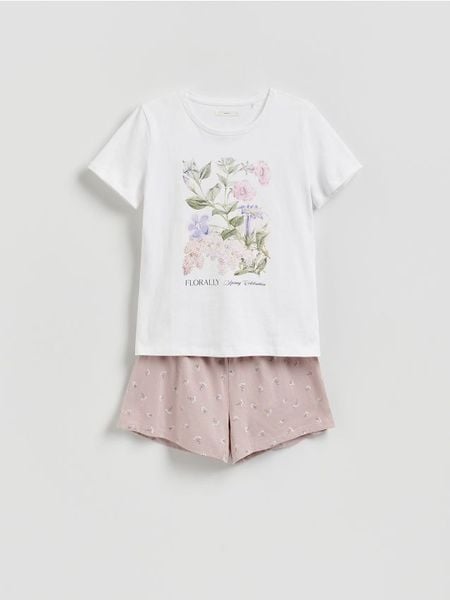 Piżama o prostym kroju, wykonana z bawełnianej dzianiny.