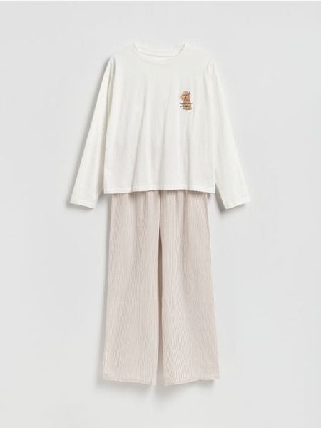 Dwuczęściowa piżama z nadrukiem – beżowy