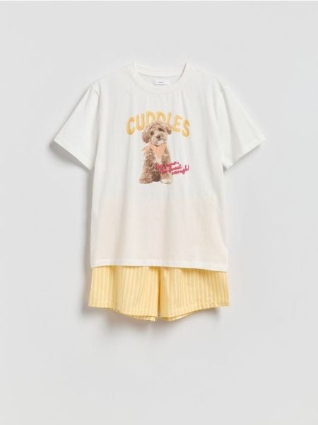 Piżama składająca się z t-shirtu i szortów, uszyta z bawełny.