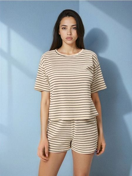 Sinsay – Piżama dwuczęściowa w paski – kremowy –