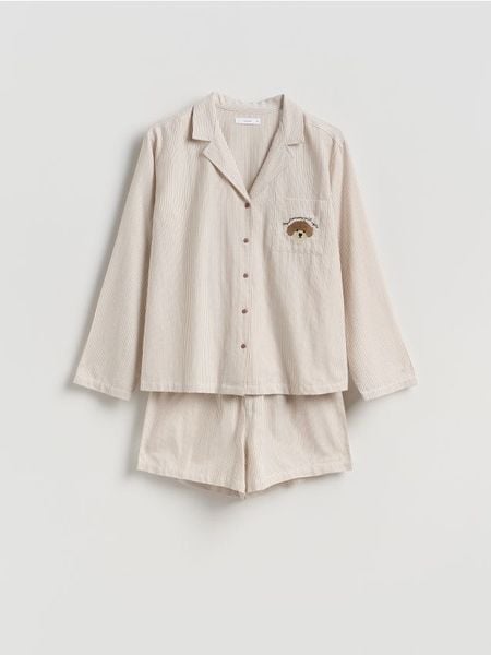 Dwuczęściowa piżama z bawełny – beżowy