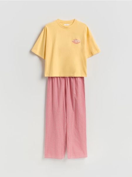 Dwuczęściowa piżama o swobodnym kroju, wykonana z bawełny.