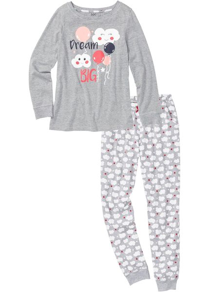Sportowa piżama z uroczym nadrukiem z motywem chmur. Atrakcyjna piżama 2-częściowa: koszulka z długim rękawem i spodnie z miękkiego materiału z wysokim udziałem bawełny. W dole rękawów i nogawek ściągacz w prążek. Zdobiona nadrukiem z motywem uroczych chmur.