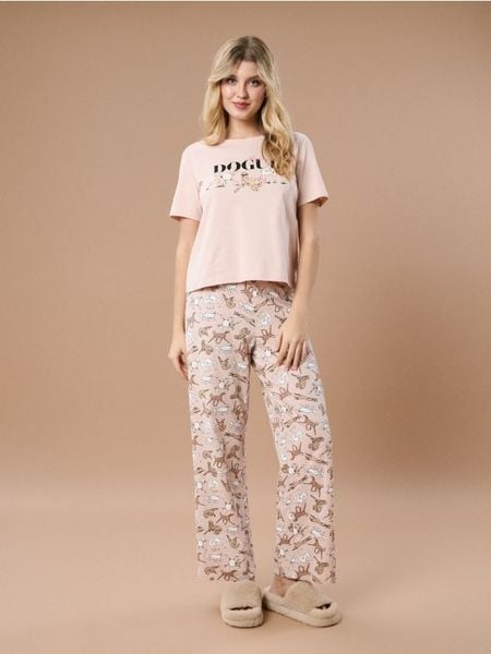 Sinsay – Bawełniana piżama dwuczęściowa z psim motywem – różowy –