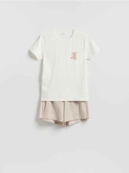 Piżama o swobodnym kroju, wykonana z materiału z bawełną.
