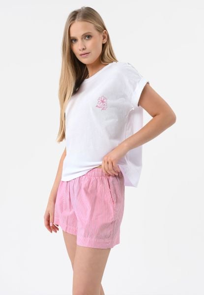 Cechy produktu: dwu częściowa – koszulka plus szorty pakowana w foliopak na wieszakukoszulka ma fason comfort mięsisty, grubszy materiałfabrycznie podwinięte rękawkiprint żółwia na piersiszorty w paskiimitacja zamkaszeroki elastyczny pasdwie kieszenie z przodudetal VolcanoPiżama damska z szortami, bawełnianaDamska piżama U-SELEN to komplet, na który składa się swobodny t-shirt z wywiniętymi rękawkami oraz krótkie spodenki z kieszeniami. […]