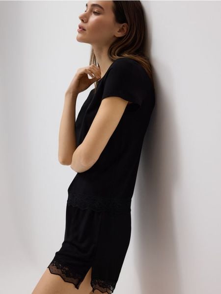 Piżama składająca się z t-shirtu i szortów, wykonana z wiskozy z domieszką elastycznych włókien.