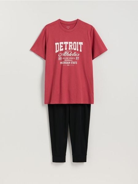 Dwuczęściowa piżama z nadrukiem – bordowy