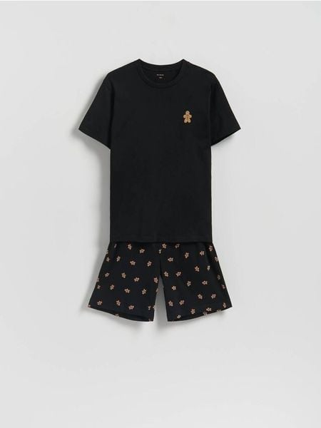 Dwuczęściowa piżama ze świątecznym motywem – czarny