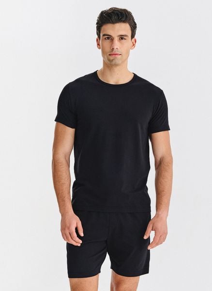 Czarna piżama męska – Pako Lorente. Dwuczęściowa piżama męska. Skład: 95% bawełna, 5% elastan. Krótka piżama męska z bawełną. Underwear. Basic.