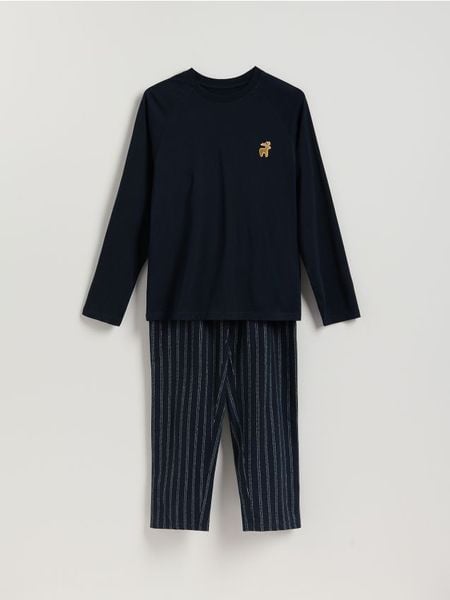 Bawełniana piżama ze świątecznym motywem – granatowy