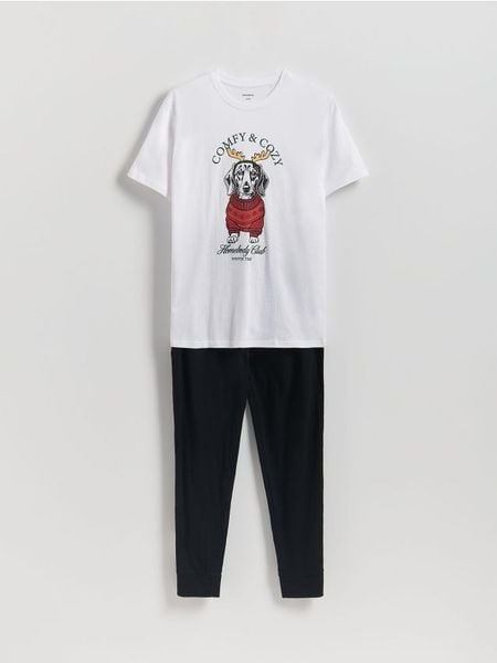 Dwuczęściowa piżama ze świątecznym motywem – biały