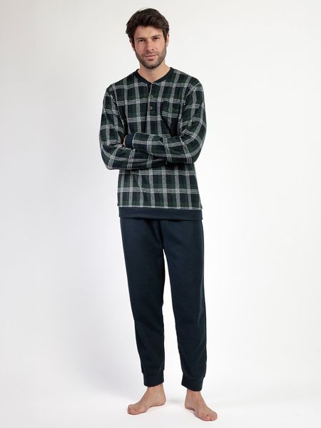 – dekolt: okrągły- zapięcie: skrócona listwa guzikowa- kieszenie: na piersi- pas / ściągacz: elastyczny- zakończenia nogawek: elastyczne- krój: prosty- wzór: kratka