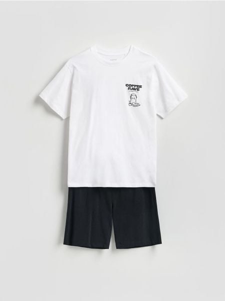 Dwuczęściowa piżama o regularnym kroju, wykonana z bawełnianej dzianiny.