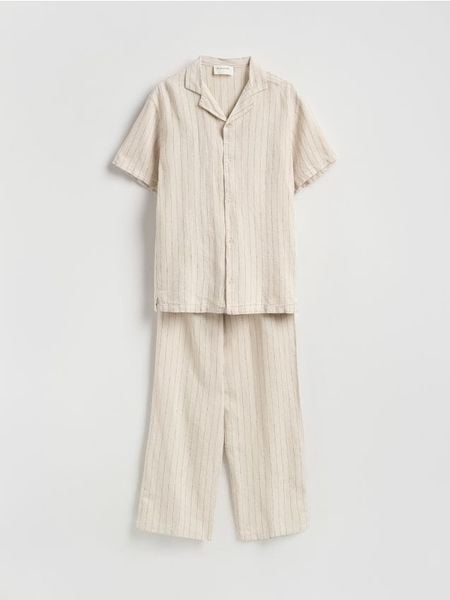 Dwuczęściowa piżama z lnem – beżowy