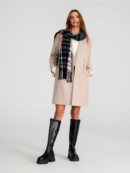 Sinsay – Płaszcz z paskiem – kremowy – dwurzędowe zapięcie na guziki,średnia długość,pasek w komplecie,wszyte szlufki na pasek,2 kieszenie z przodu,rozcięcie z tyłu