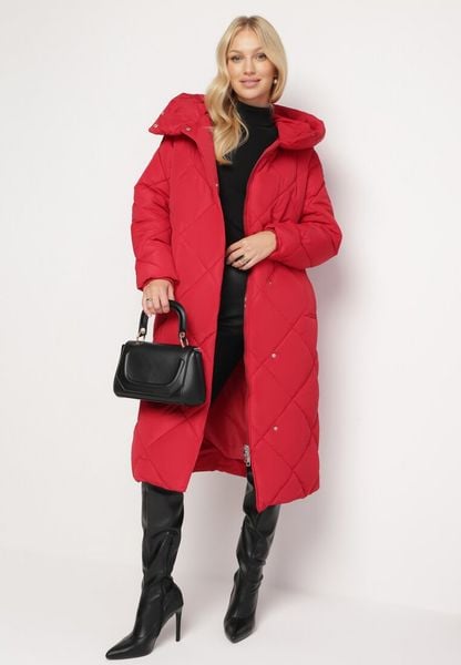 Czerwona Kurtka Płaszcz z Geometrycznym Pikowaniem Johnatta