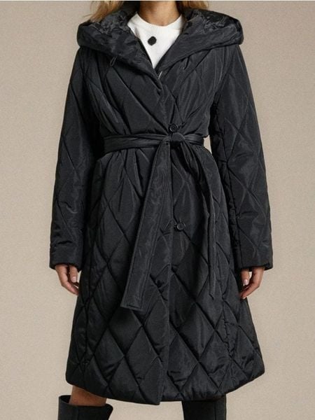 Sinsay – Pikowany płaszcz z kapturem – czarny –