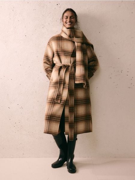 Płaszcz o kroju oversize, wykonany z tkaniny z wełną.
