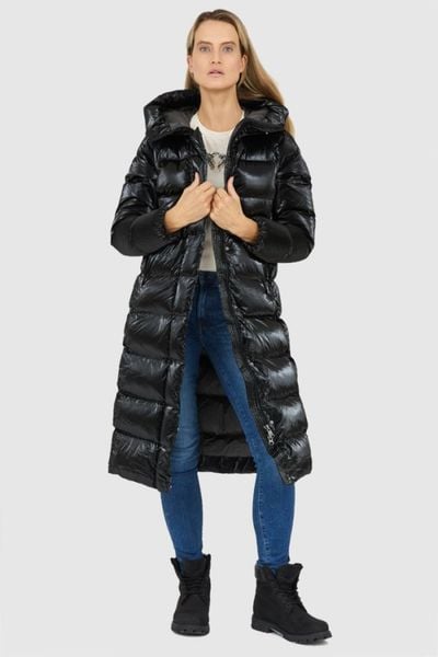 HETREGO Czarny damski płaszcz puchowy Karen z kapturem, Rozmiar 40 EU - 44 IT