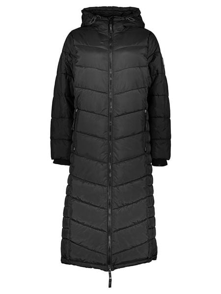 Czarna Długa Kurtka Pikowana Płaszcz Mocno Ocieplona z Nieodpinanym Kapturem Naliope