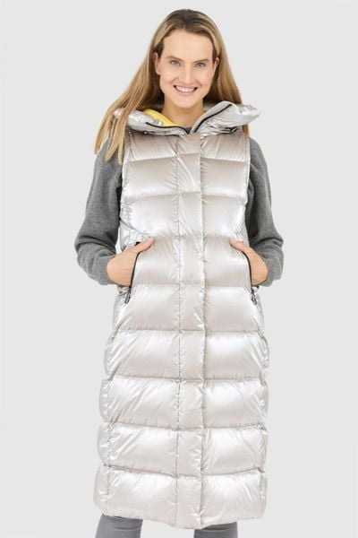HETREGO Beżowy błyszczący płaszcz damski puchowy z odpinanymi rękawami summer, Rozmiar 36 EU – 40 IT