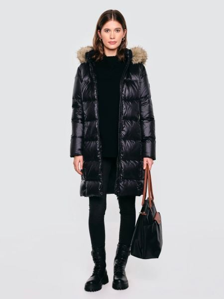 Płaszcz damski puchowy z naturalnym wypełnieniem czarny Melissa 906
